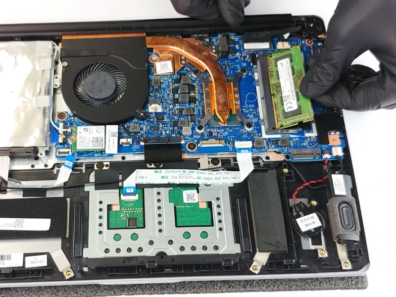 Di sebelah baterai notebook ini atau diatas baterai BIOS ada sebuah daerah atau slot M.2 untuk memasang SSD M.2.. (foto: Nerd Reviews ID)